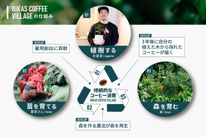 ネパールの山奥にアグロフォレストリーで育つ希少かつ上質なコーヒー豆を取り扱う合同会社BIKAS COFFEE(東京都文京区:代表社員 菅勇輝、以下:BIKAS COFFEE)は、コーヒーの苗に名前をつけて植樹するプロジェクト「BIKAS COFFEE VILLAGE」第6期のオーナー募集を2026年4月17日(金)より開始します。6期目を迎える今回は、新たに3つのプロジェクトを始動。これまで植樹してきたネパール・ハルパン村、ダリンボット村に加えて新たな村「ニルマールポカリ村」にて植樹を実施します。また、BIKAS COFFEEとして初となる精製プロセスへの挑戦や村人の暮らしに根ざした畜産プロジェクトを展開します。オーナー募集期間中は、全国各地で植樹プロジェクト参画企業とその地域の方々と共にイベントや出店を繰り広げ、国を超えて生産から消費まで、すべてのヒトの想いが重なり発展する社会を目指します。